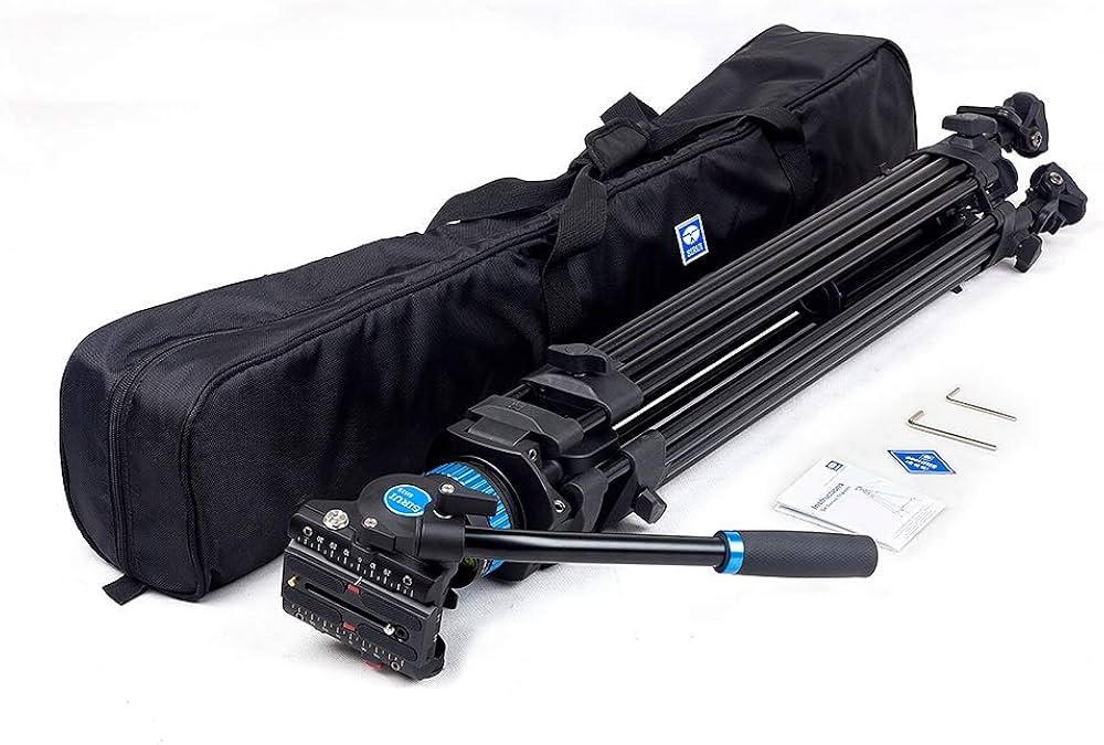 Kit trépied vidéo aluminium 2 étages avec bol 75mm et tête fluide compacte. Charge utile 10 kg, hauteur de travail 91 à 190 cm. Panoramique 360° avec verrou indépendant, inclinaison de -75° à +90°. Barre de pan incluse, plateau caméra avec verrouillages anti-rotation. Pieds à pointes rétractables avec patins caoutchouc. Entretoise médiane intégrée pour une stabilité maximale.