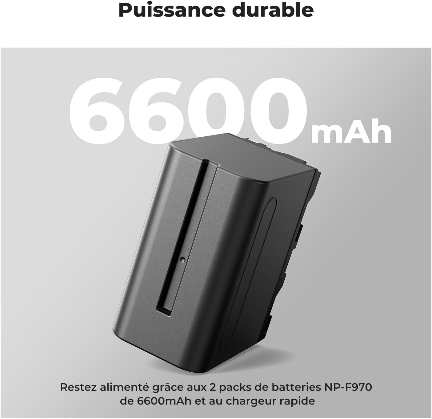 [Alimentation électrique Adéquate]:NP-F970 batterie de remplacement avec deux batteries 6600mAh (capacité réelle) et un chargeur, compatible avec l'adaptateur de batterie NP-F. [Forte compatibilité]:Batterie NP-F970 s'adapte parfaitement à l'appareil photo et au chargeur caméscopes Sony d'origine, elle est entièrement décodée et n'a pas d'effet de mémoire. compatible avec Sony NP-F960/NP-F950/NP-F930/NP-F770/NP-F750/NP-F550/NP-F570 compatible avec les Sony HXR-NX5R/HXR-MX100/HXR-MC1500C/HXR-MC2500/HDR-FX1000E/HDR et les éclairages de caméra, les moniteurs, les curseurs de caméra motorisés, les suiveurs de mise au point sans fil, etc. [Méthodes de chargement multiples]:Multiples méthodes de chargement : alimentation par chargeur mural, chargeur de voiture ou même chargeur portable ; entrée Micro-USB 5V / 2,1A ; [Système de Protection Intelligent]:NP-F970 batterie chargeur est conçu avec une protection contre la surcharge, la surintensité, la surdécharge, la surtension et les courts-circuits pour garantir la sécurité et la fiabilité. Adopte un ABS ignifuge de haute qualité et une coque en PC dépoli ;