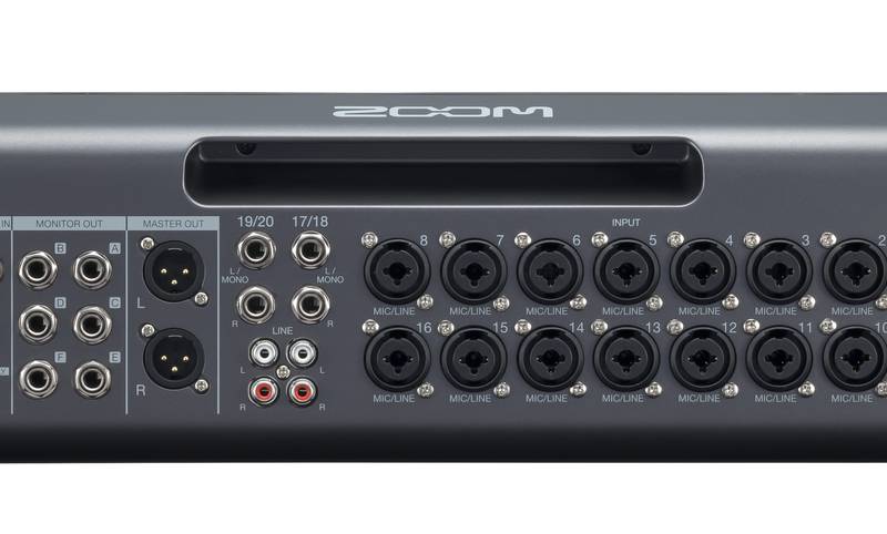 Le Zoom LiveTrak™ L-20R est un mélangeur numérique montable en rack qui permet aux musiciens de contrôler leur mixage live directement depuis la scène au moyen d’un iPad. Avec ses possibilités de commande sans fil, ses 20 canaux indépendants, ses 22 pistes d'enregistrement et ses six mixages de retour personnalisés, le L-20R offre une solution complète pour toutes les salles.